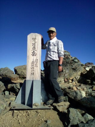 そこから万ノ助カールを見ながら、荒川東岳(悪沢岳)の山頂に7時10分到着した。