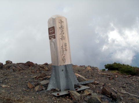 歩き出して50分くらいで千枚岳に着く、皆さんも登ってきたので、写真を撮ってもらう。