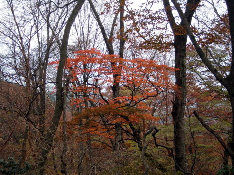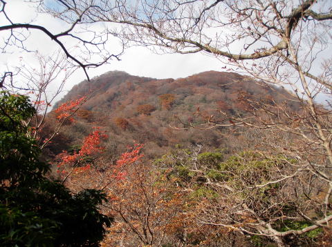 涸沢分岐点から山肌を巻くように進み、静かな紅葉の道を歩き、14時頃、天城高原ゴルフ場の登山者駐車場に着いた。