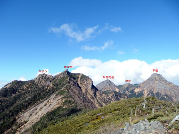 権現岳頂上 より西ギボシ・東ギボシ 三ツ頭方面