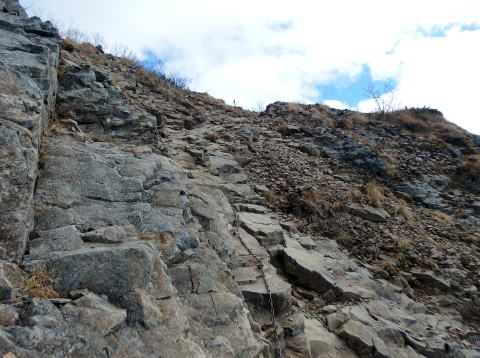 岩壁の登山道を進み、東ギボシの頂上に11時過ぎ到着し、権現小屋に11時15分過ぎ到着した。