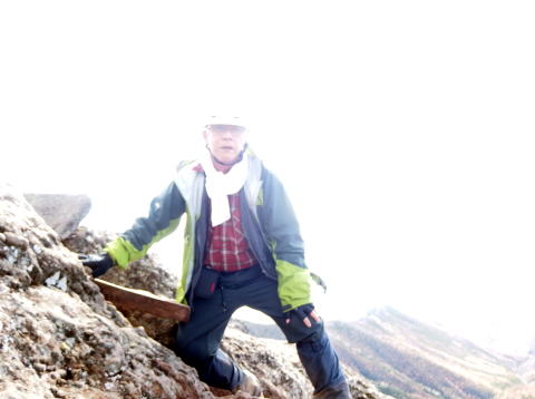 権現岳頂上は狭く頂上の看板があり、記念写真を撮るのに苦労してしまった。
