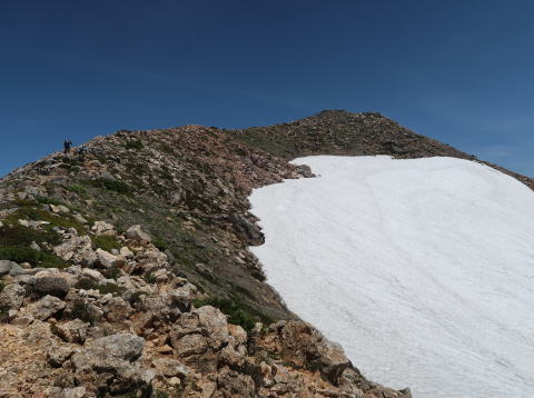途中迂回路の雪渓部で道を間違えてしまい、12時50分大汝峰分岐に着く。
