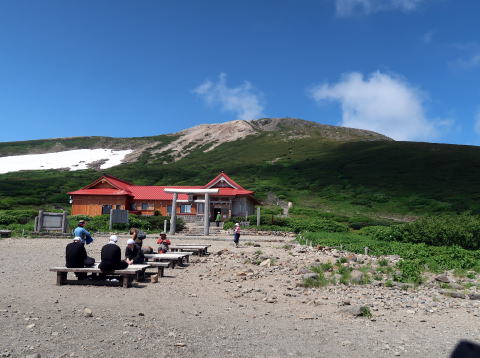 7時に室堂から白山御前峰に向かう前に、白山比咩神社 奥宮祈祷殿に立ち寄る。