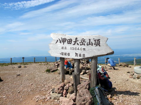 山頂から高田大岳がそびえて見え、八甲田の頂上に到達した歓喜がわいてきた。
