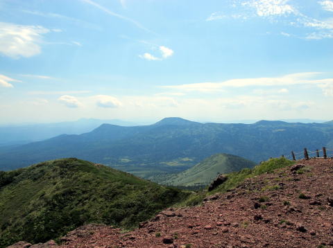 赤倉岳から直進し、井戸岳の噴火口みながら進み、井戸岳は植生林保護のため立入禁止である。