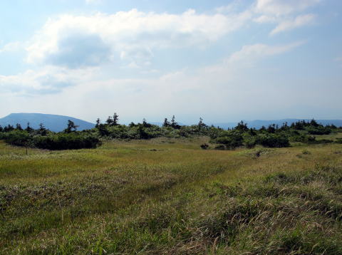 下り道の樹林帯を抜けると 上毛無岱に出て、木道歩きになる。