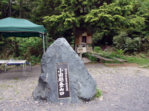 小田越登山口の近くに小田越山荘があった、11時30分登山口を出発する。