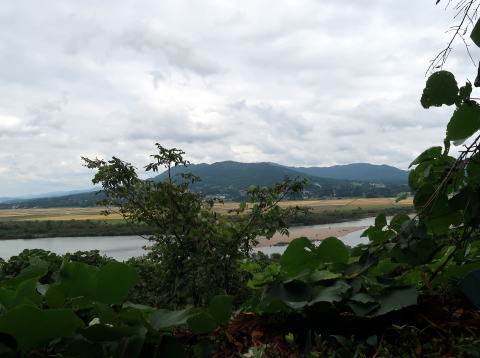 早朝の散歩はまだ前日の登山の影響で足の筋肉が痛む。