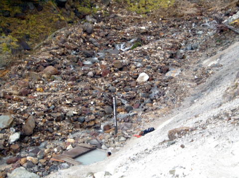 小雨の中を日本最高所の野天風呂(2150m)に15時30分頃行き、先にご夫婦が入っていた。