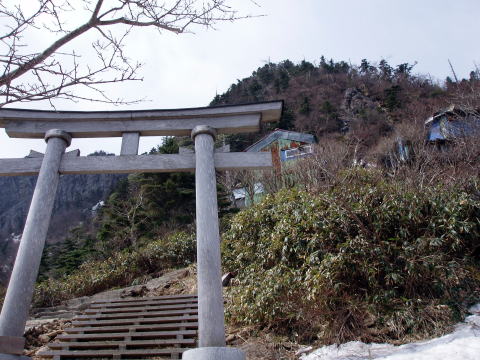 三ノ鎖の迂回路から残雪が現れ、弥山・石鎚神社頂上社に10時50分到着する。