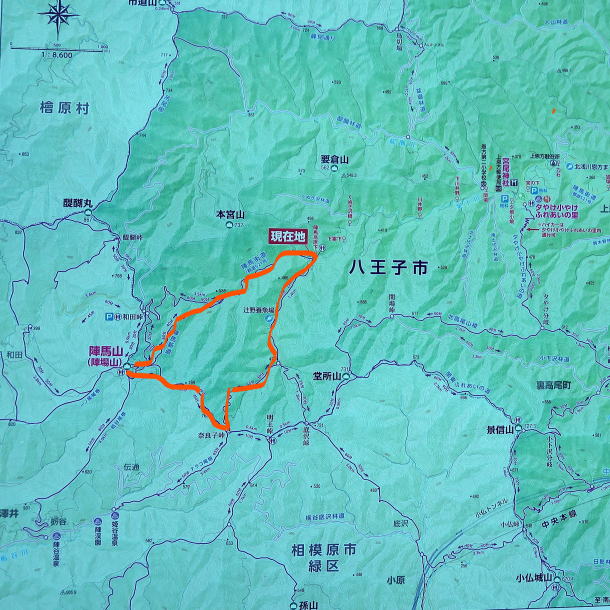 高尾駅→陣馬高原下~陣馬街道分岐~陣馬山~奈良子峠分岐~陣馬高原下→高尾駅