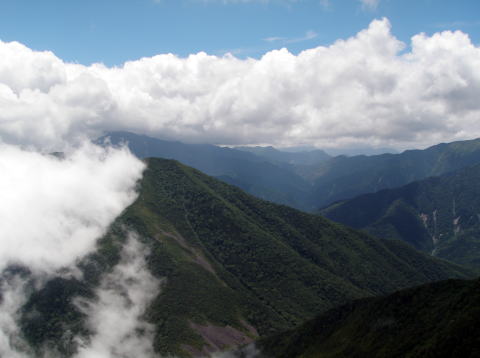 仙水小屋から樹林帯を抜け、岩塊の斜面に出て、岩塊の谷間を進むと8時50分ころ仙水峠に到着した。