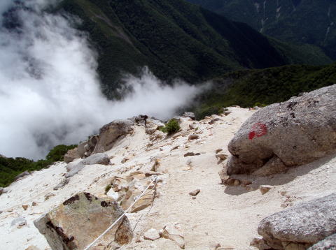 仙水小屋に向かう 仙水峠に向かう岩塊の谷間
