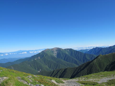 間ノ岳の稜線 間ノ岳の稜線から北 岳