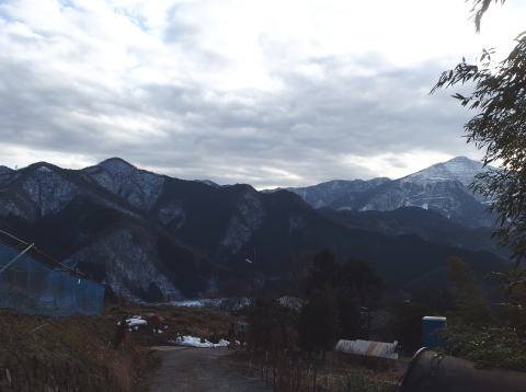 準備をし8時45分頃Yさんの誘導で出発する。 国道299号線を東京方面に向かったら、残雪が残っていた。