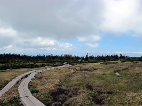 人形石から中大嶺分岐に行き、木道をたどりながら、西吾妻山を目指す。