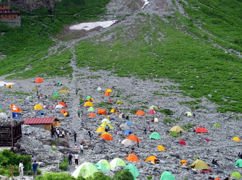 涸沢小屋よりのテント場 屏風の頭・屏風の耳