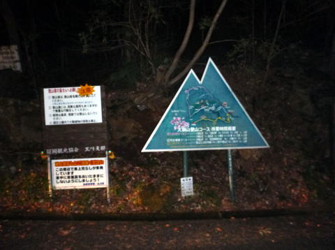 到着時真っ暗のため福岡の山の会リーダーに登山道を教えてもらう。