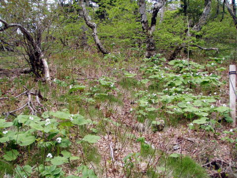 八経ヶ岳に向かう鞍部まで下ると、防護柵の扉を開けて登りオオヤマレンゲは、まだ咲いていない。