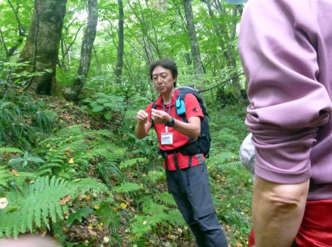 ガイドの後藤氏、菊池女史から白神山地の森林生態系の説明お聞きながら進む。