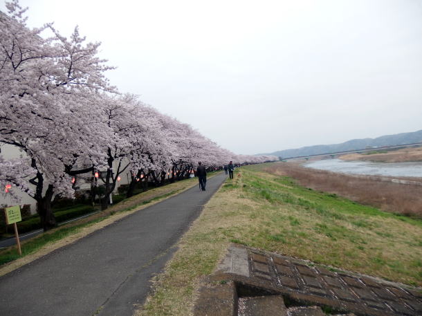 多摩川土手の桜 平成27年4月5日(日) 3月30日の土手の桜 4月5日の土手の桜 多摩川の土手を散歩する。 1週間前はまだ満開ではなかったが、今週の日曜日は犬の散歩をかねて行ってみたら、満開の状態であった。 雨模様の天気でいつもより人では少なかった。 多摩川土手 海から50㎞