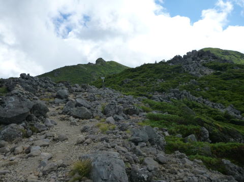 12時5分頃、中山峠・黒百合平方面の分岐に出て、黒百合平方面に行く。黒百合平方面の登山道は岩が多く、