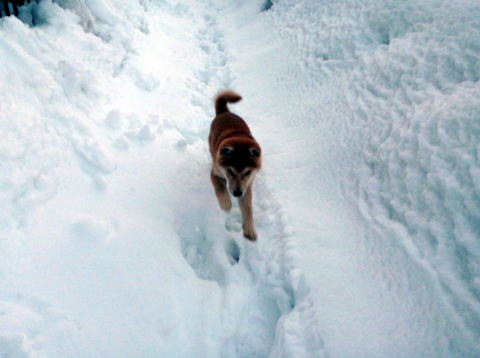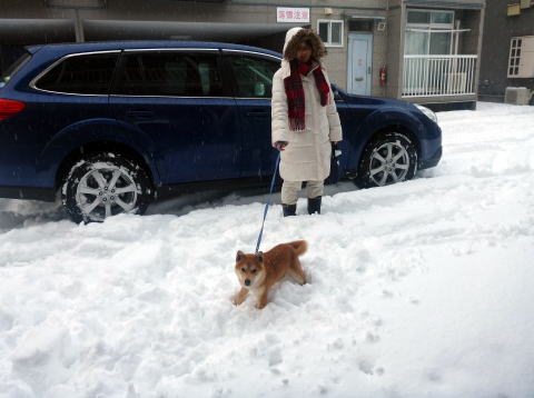 八戸道から東北道の一関までは、雪に降られ、ダイちゃんは車の後ろで、おとなしくしている。