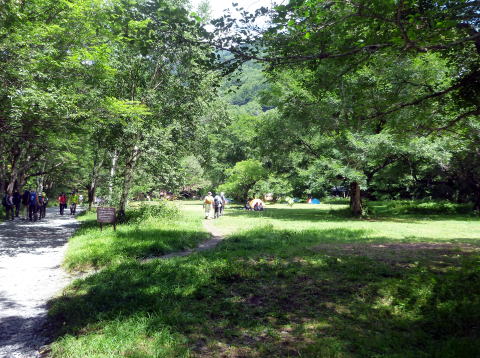 上高地に10時15分過ぎ到着し、登山届けを提出し、10時30分出発する。