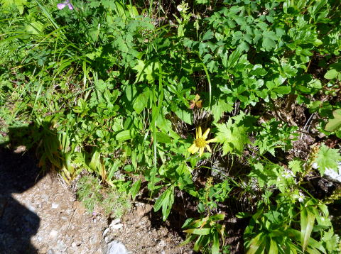 ガレ場を過ぎてから、お花畑を下る、途中水場で水割り用の水を汲む。