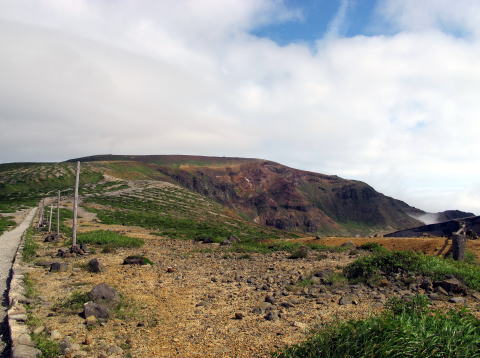 リフトの乗って来る人達もおり、馬の背を歩きながら御釜を見物をしながら歩を進める。